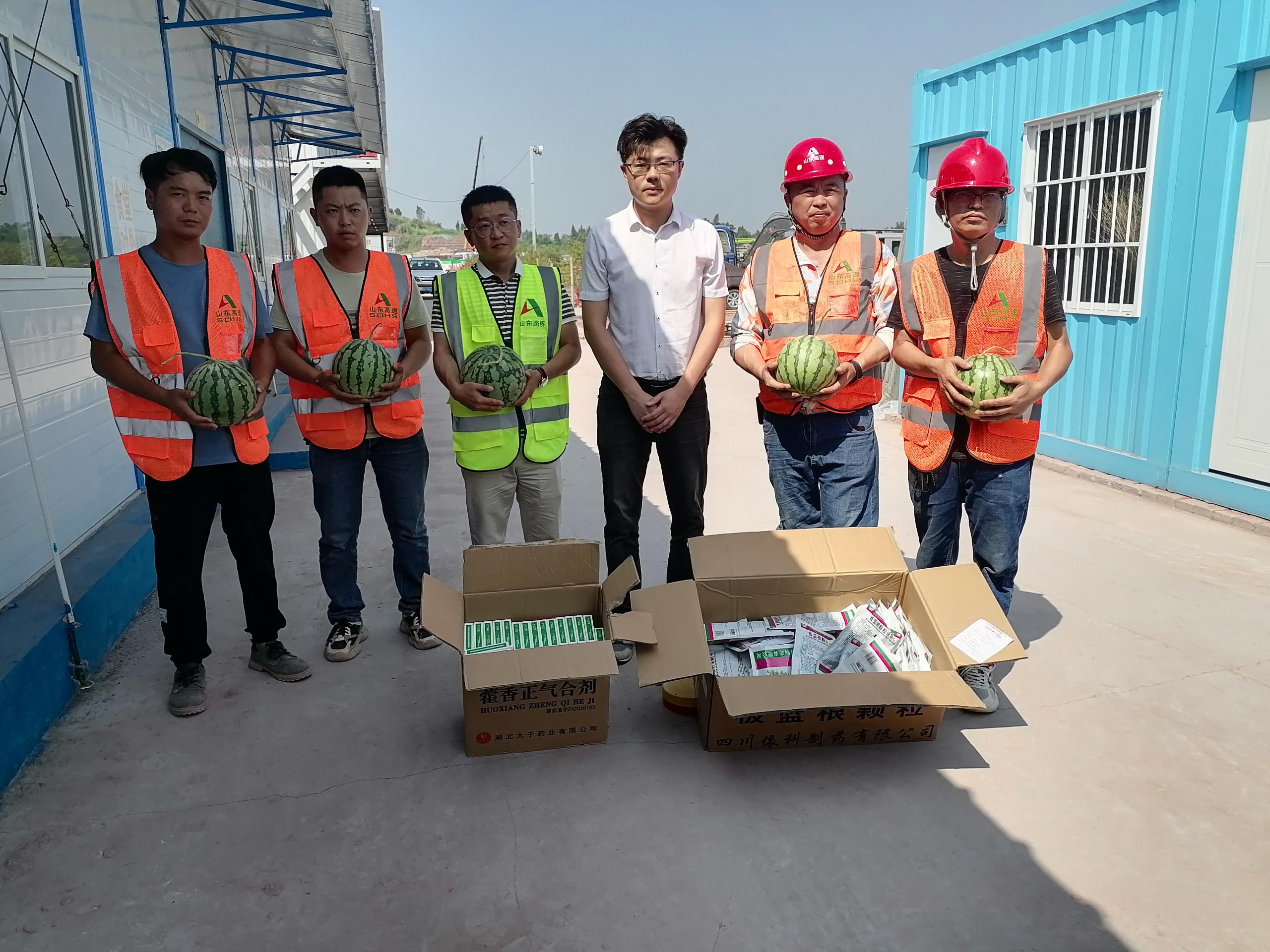 每到一個項目施工現(xiàn)場,周士棠同志都深入一線職工當(dāng)中,與大家親切交談,親自將一個個西瓜,一盒盒防暑藥品發(fā)放到大家手中,細致詢問大家近期的生活情況和工作情況,實地查看項目進展情況。了解到員工在近40攝氏度的酷熱下依舊堅持高溫作業(yè),加班加點堅守施工一線,爭分奪秒比質(zhì)量搶進度后,周士棠同志對大家在高溫天氣仍堅守崗位、辛苦勞動付出的精神表示高度肯定與贊揚。